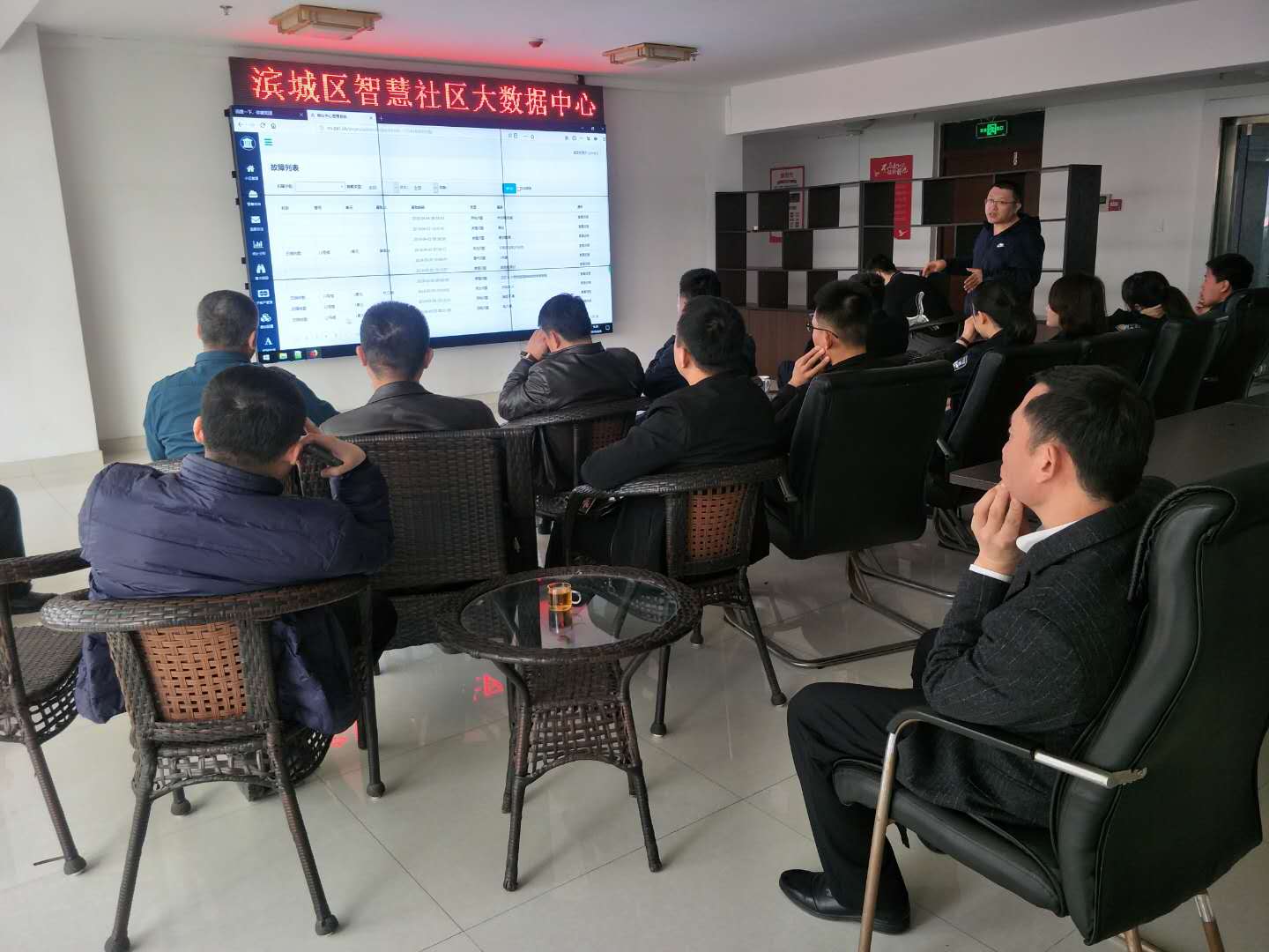 2019年4月4日,濱城區公安局劉廣清副局長來我司對“智慧社區—幸福濱城”項目進行調研。領導及街道辦事處一行認真聽取了項目的具體介紹。